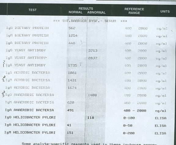 Here is a copy of the serum candida antigen test results he ran on Pat back in 2001: